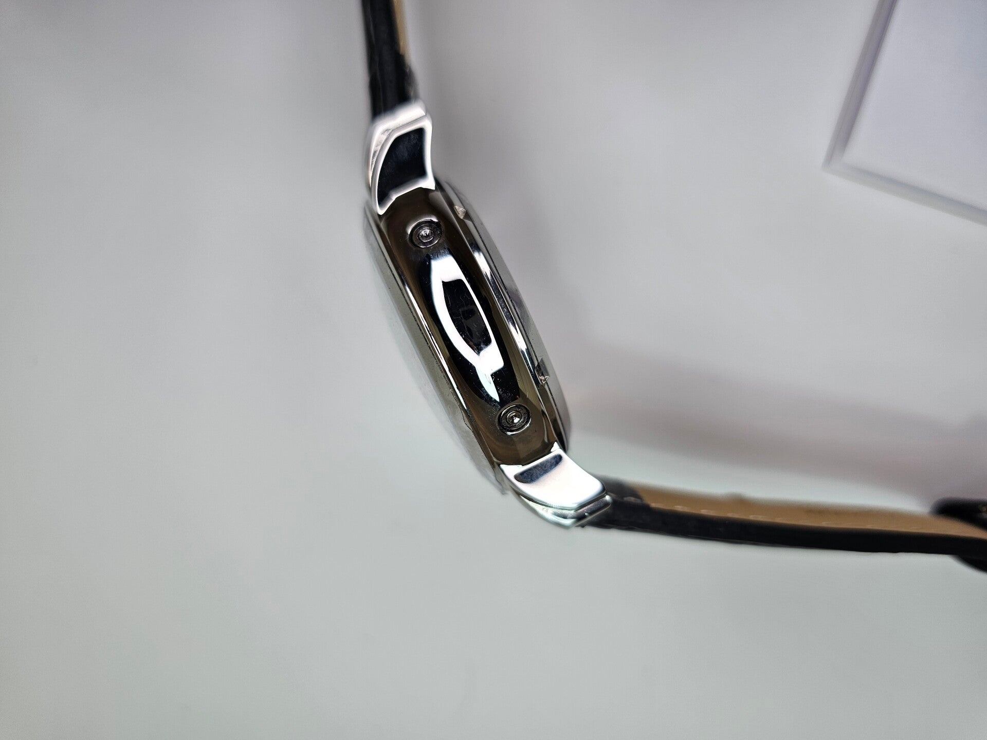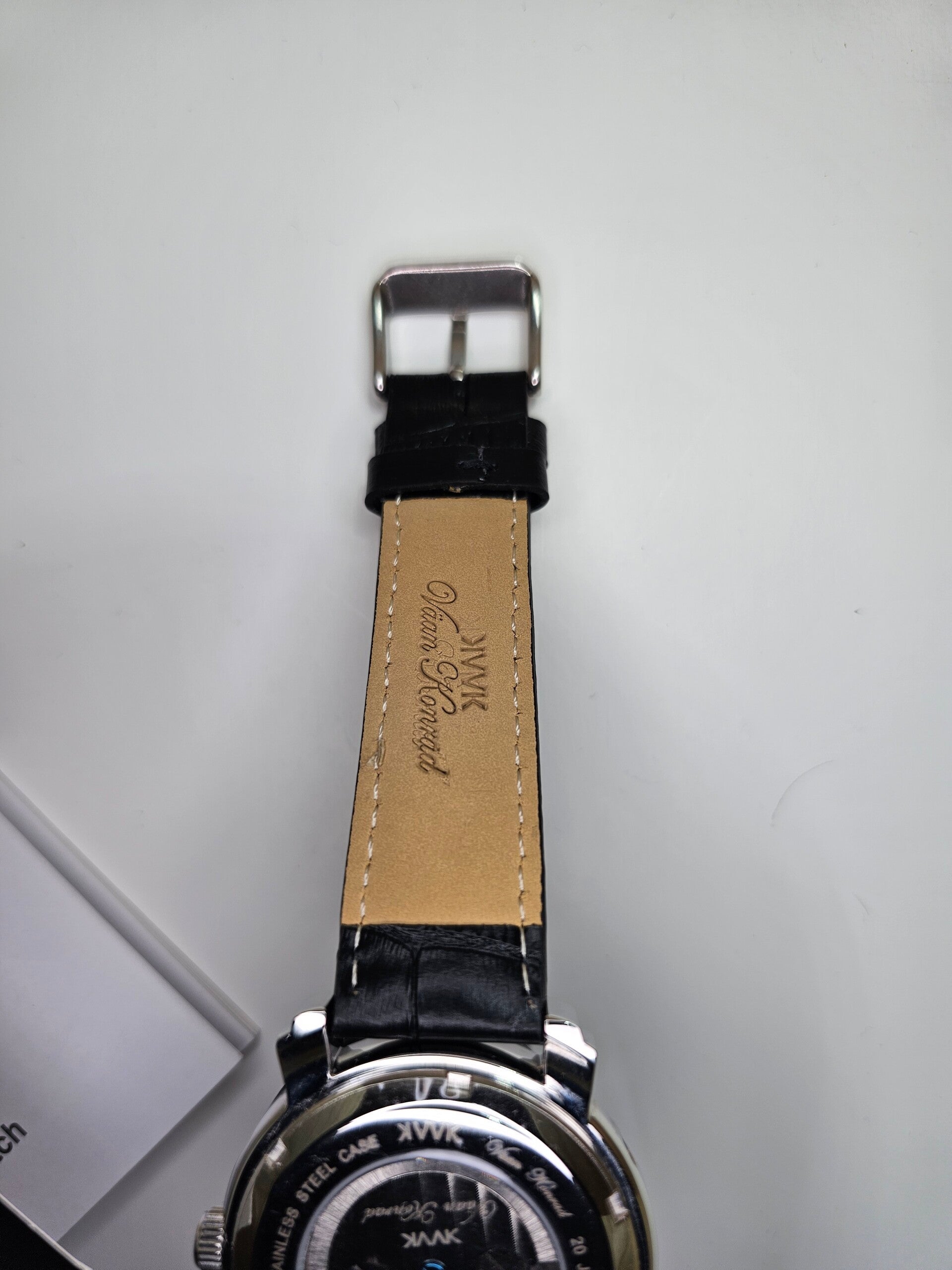 This watch not only shows the date, but also the day, month and year on top of the 24hr time. The watch has the plastic cover to the dial and caseback. The rotor rotates freely and can be hand wound. Lovely piece.